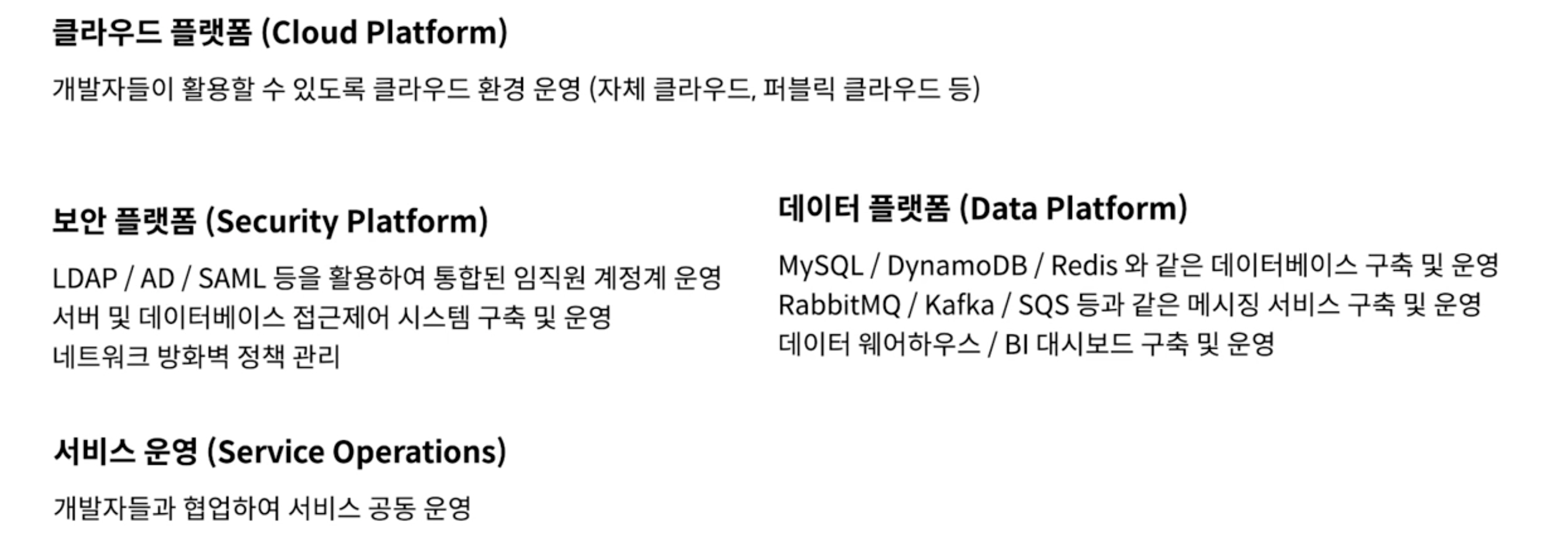 - 개발자가 개발 뿐만아니라 운영도 할 수 있는 환경을 구축해주는 시간을 쓰는 것이 데브옵스 엔지니어이다