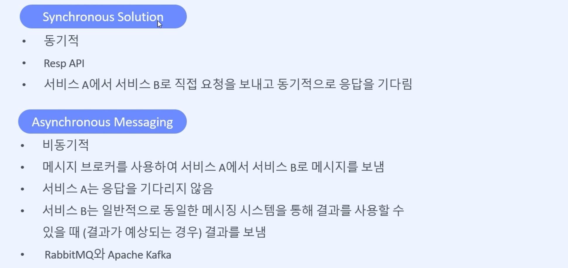 - 비동기 방법이 마이크로서비스 통신에 적합하다