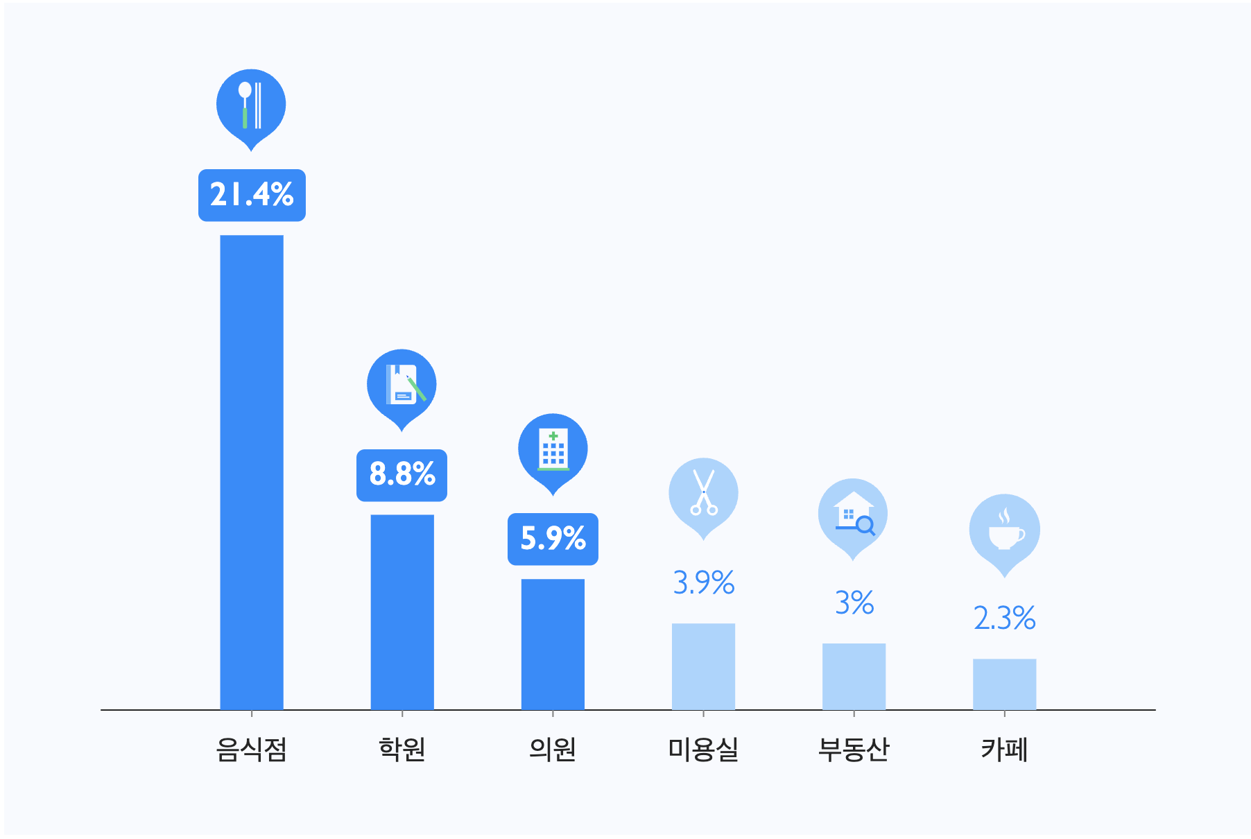 { x: "음식점", y: 21.4, color: "#0C8BFF", dy:-32 },