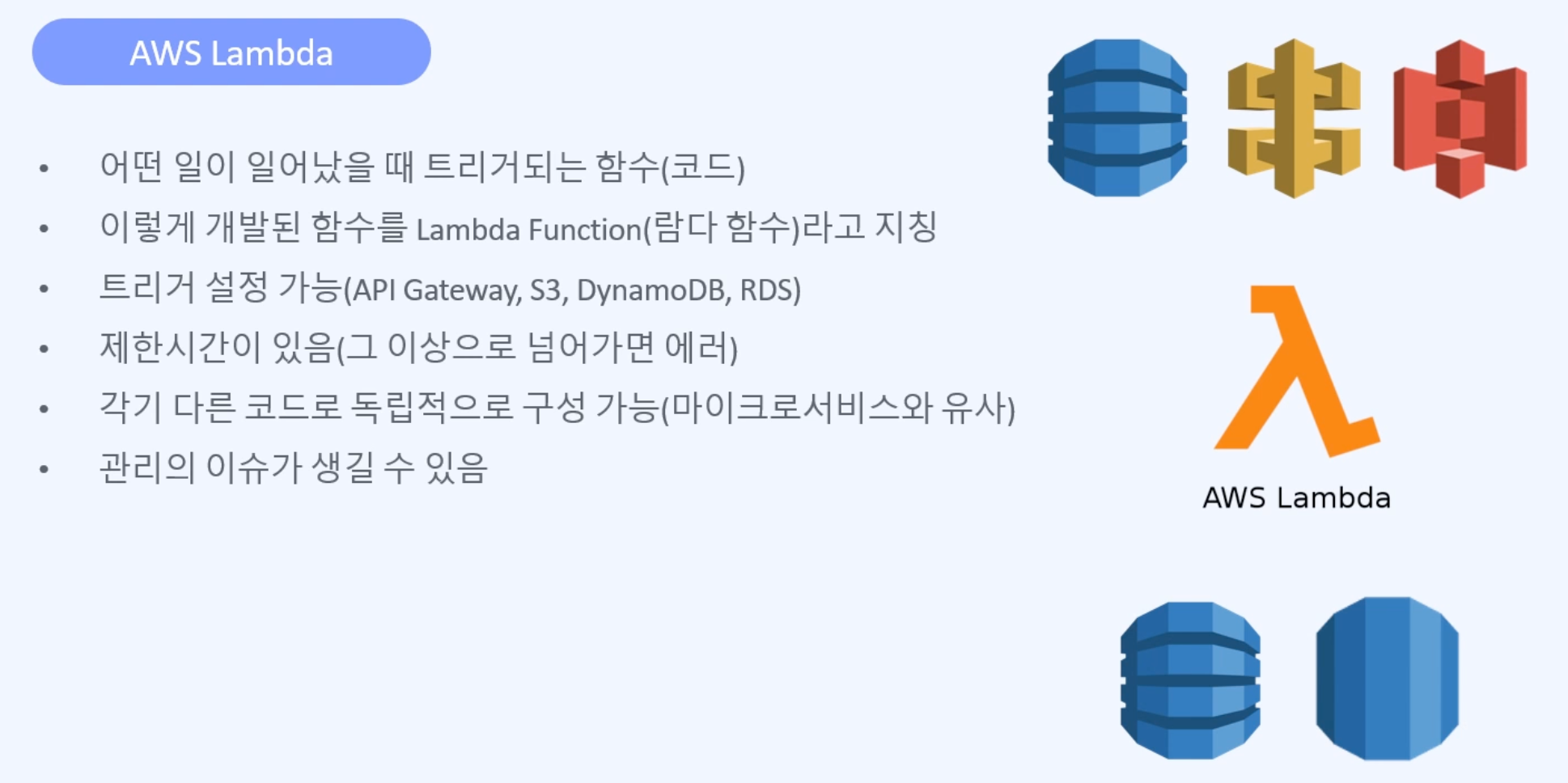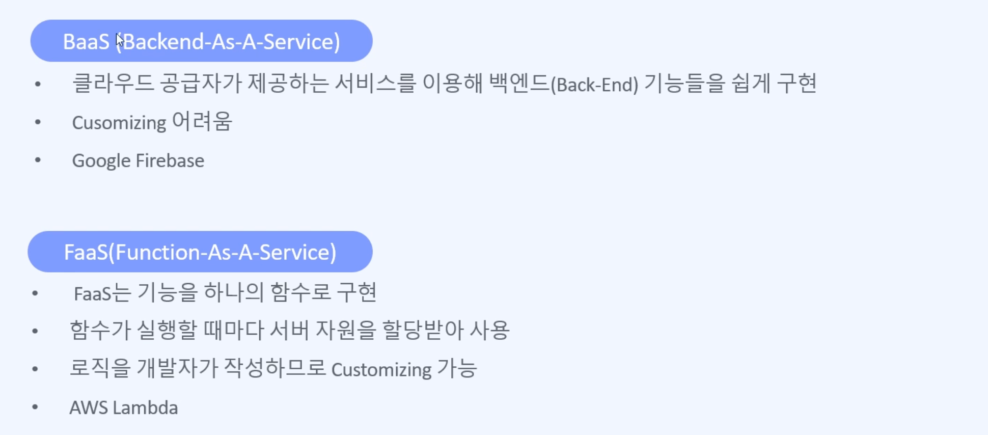 - FaaS 대표 : AWS lambda
