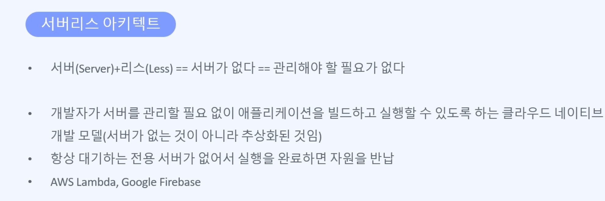 - 항상 대기하는 전용 서버가 있는 것이 아니라, 사용할 때마다 쓰는 것이다