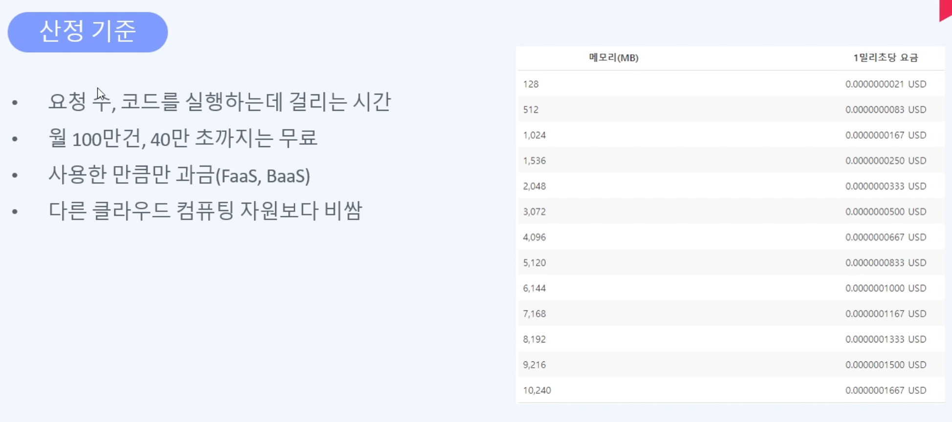 lambda의 비용 산정 기준