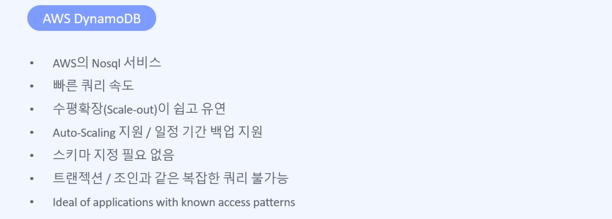- DynamoDB는 AWS의 Nosql 서비스이다
