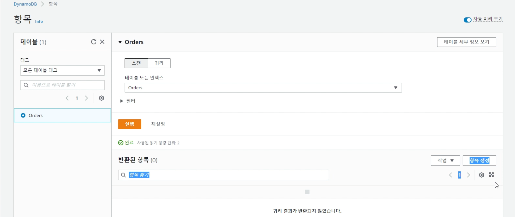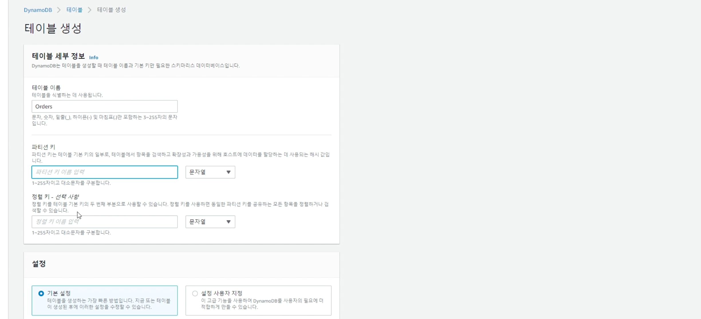 (1) AWS에서 DynamoDB 검색해서 테이블 생성하기