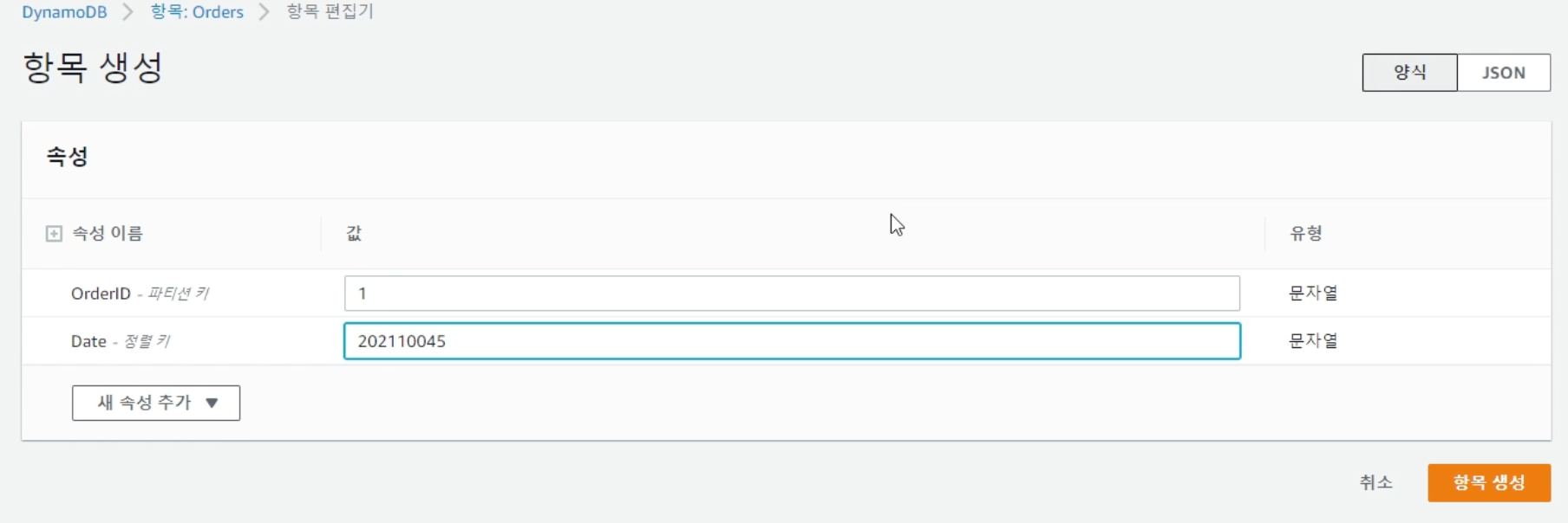 DynamoDB 항목(Item) 추가하기
