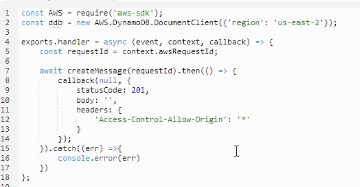 (1) Lambda 함수에서 Nodejs 14 버전으로 async 함수를 작성해서 만든다
