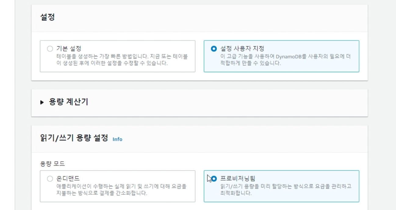 - 프로비저닝은 DynamoDB의 동접인원이 대충 예상가능할 때 -> 프로비저닝이 좋을 것 같다