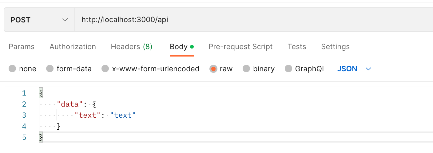 POSTMAN을 통해서 API를 호출했다. API 주소는 http://localhost:3000/api 이고, get method는 아래와 같이 간단하게 호출 가능하다.