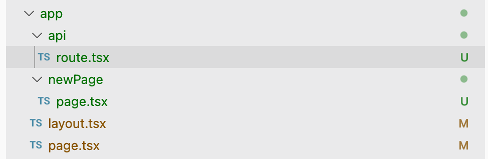 먼저, Next 13은 그사이에 File Structure가 변했다. 이제 app이라는 src와 비슷한 역할을 하는 directory 밑에서 모든 것을 구성한다. pages라는 폴더가 사라진 것도 처음에는 헷갈렸다. 여하튼 API를 만들기 위해서 다음과 같은 디렉토리 구조를 만들었다.