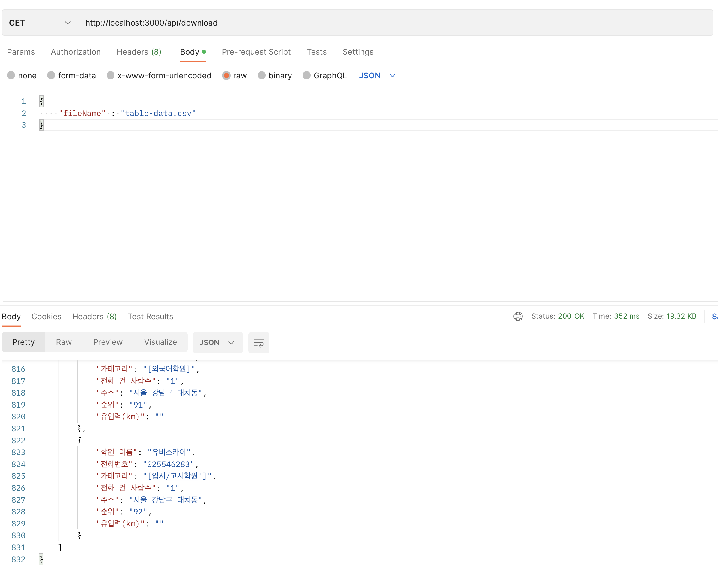 POSTMAN에서 테스트