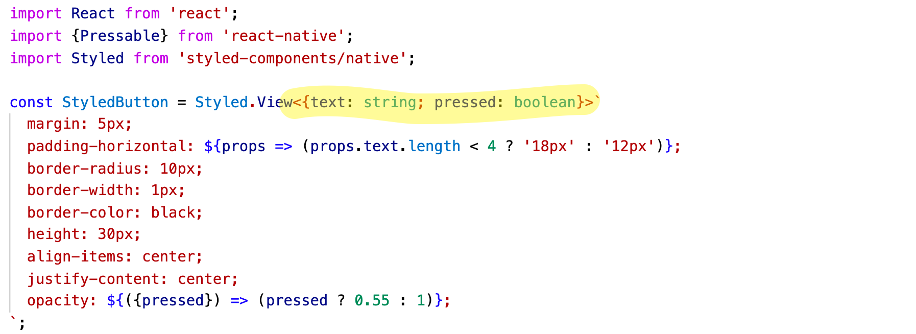 styled-component 부분에서 generic<>을 활용해서 style에서 활용하는 props의 type값을 지정해주면 됩니다.