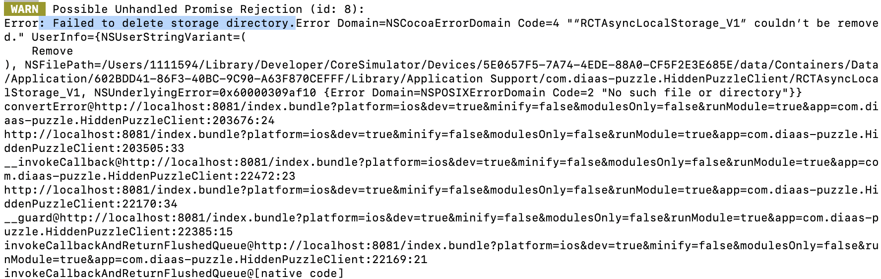React Native로 개발하면서 iOS 시뮬레이터로 확인하는데 다음과 같은 warning이 등장했다