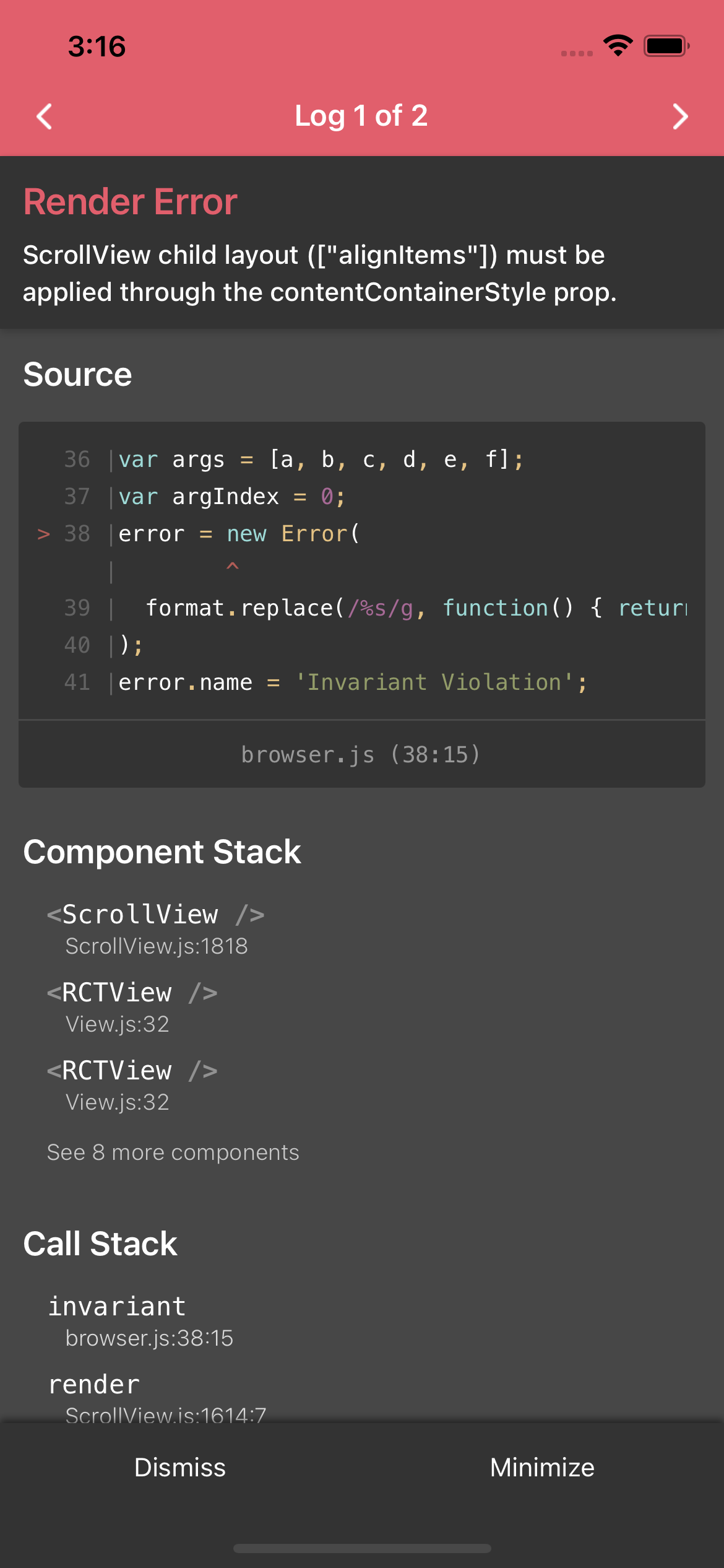 하나도 안 어렵지 하면서 아래와 같이 align-itmes를 중앙으로 설정했는데 에러가 발생했다.